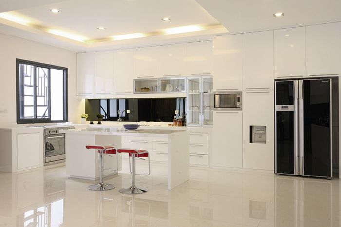 Bahan ini sangat cocok untuk storage lemari dapur, plus sebagai flooring yang cantik. Sebagian besar pentingnya ruangan ini tampaknya tergantung pada ukuran dapur, keluarga, dan gaya hidup. Energi yang terjadi di dapur, terutama saat yang terpenting adalah posisi kompor (api) dan sink (air) sebaiknya tidak terjadi konflik. Ini adalah benda paling penting yang perlu ada di dapur setiap rumah.
