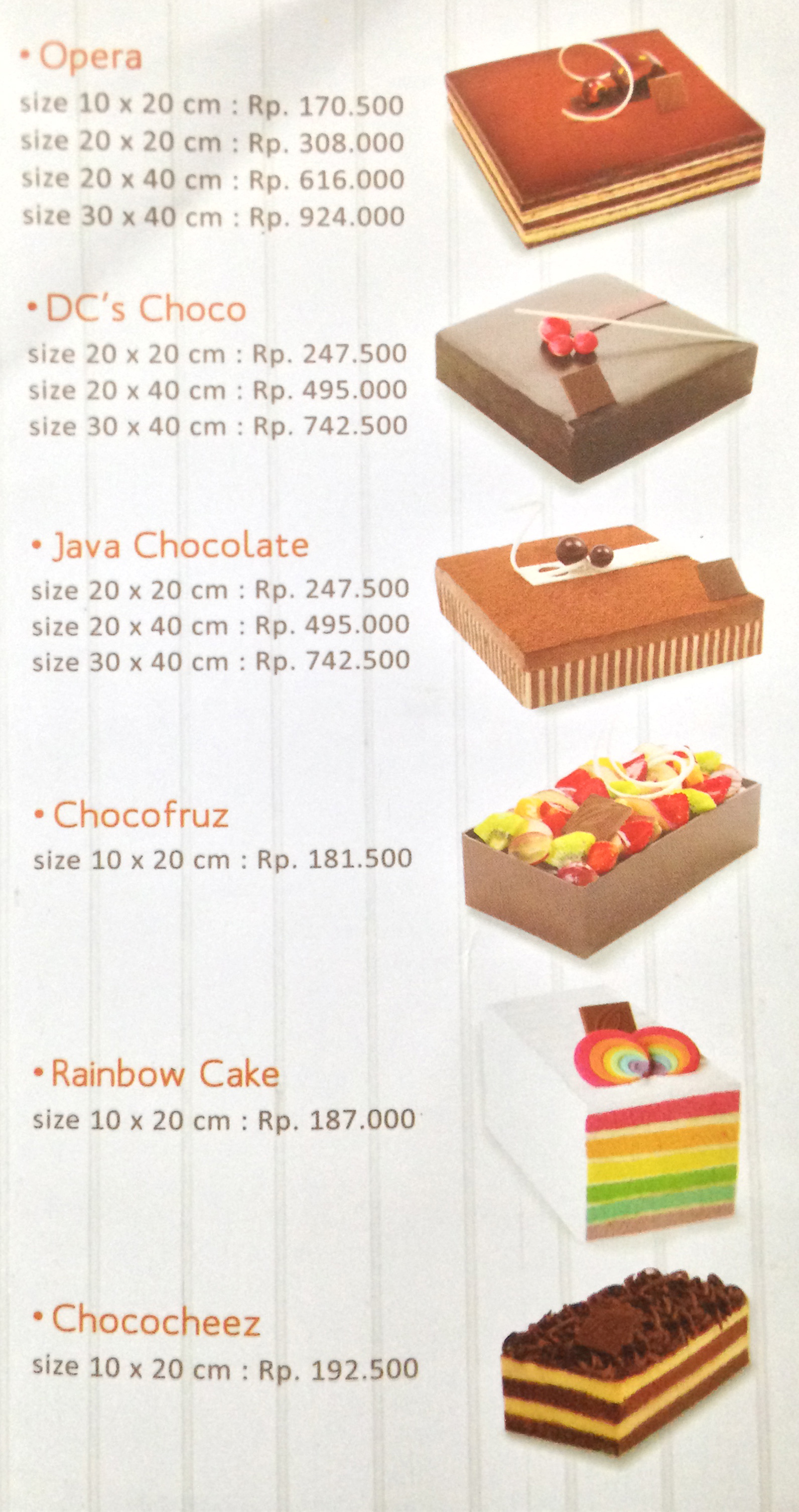 Beberapa menu favorit yang ada di dapur cokelat pekanbaru diantaranya ada chococheez, milky o cake, two season, rainbow cake, caramel chocolate, tiramisu, triple decker, peanut nougat cake, dll. Dapur coklat dulunya ermey memulai bisnis ini dengan cara menerima berbagai pesananan kue dan permen cokelat di rumahnya sendiri. The perfect harmony of mascarpone mousse, espresso coffee and pure cocoa powders making this cake a heavenly treat for any occasions ! Dapur cokelat adalah salah satu brand f&b yang menjual berbagai cokelat, kue ulang tahun, praline, kue pernikahan, kue custom yang telah memiliki 25 outlet di seluruh indonesia An all time italian favorite. Black sticky rice cake 95.000. Swiss roll chocolate hazelnut 120.000. Feb 26, 2020 · dapur cokelat pekanbaru memiliki lebih dari belasan menu cakes dan coklat yang siap melumerkan lidahmu. Six bright layers of joy in one bite, complete with layers of cream cheese topped by the our unique white chocolate mousse. Choco melt silverqueen cake 350.000. They also keep up with new trends on cake, few while ago i saw a velvet cake, and now, this rainbow cake sitting on their display. Oct 02, 2018 · regular cakes dapur cokelat. Dapur cokelat jakarta • dapur cokelat jakarta photos • dapur cokelat jakarta location • More images for dapur cokelat rainbow cake » An impressively tempting chocolate cake with delightful combination of dark cherries, pastry cream and mild chocolate mousse, what else do you need ?? Jul 15, 2020 · rainbow cake:# inaf suwanto february 17, 2012. Nov 23, 2012 · dapur cokelat juga seringkali mengikuti trend cake yang sedang digandrungi, tempo hari saya lihat velvet cake, dan sekarang ada rainbow cake di display mereka.
