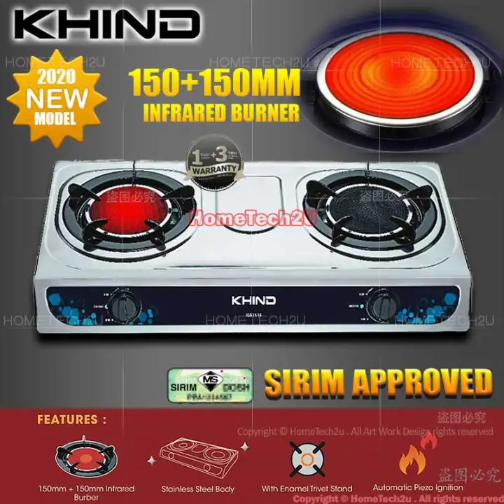 Khind 2 burner infrared gas cooker with gas saving igs1516.